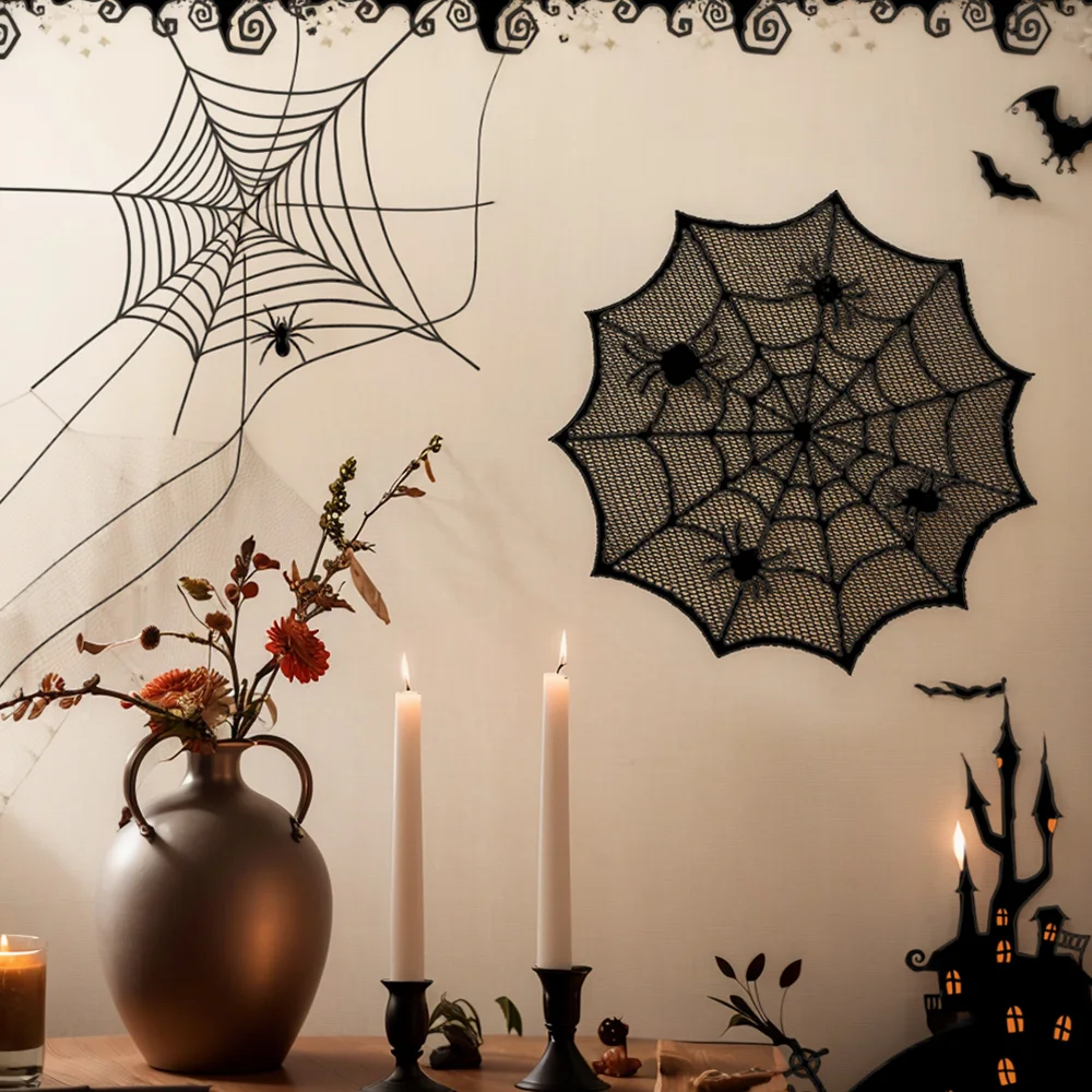 Enhance your Halloween table setting with the Runtow 1pc Halloween Spider Web Placemat. Designed with heat insulation, it protects your surfaces from hot dishes while adding a spooky touch to your décor. The intricate spider web pattern contributes a festive ambiance, making it an ideal choice for Halloween gatherings and parties. Durable and easy to clean, this placemat combines practicality with seasonal style.