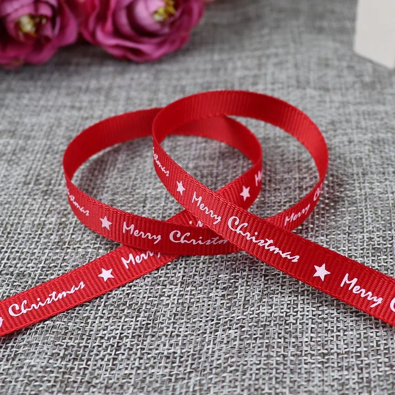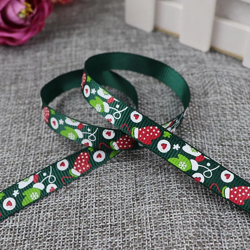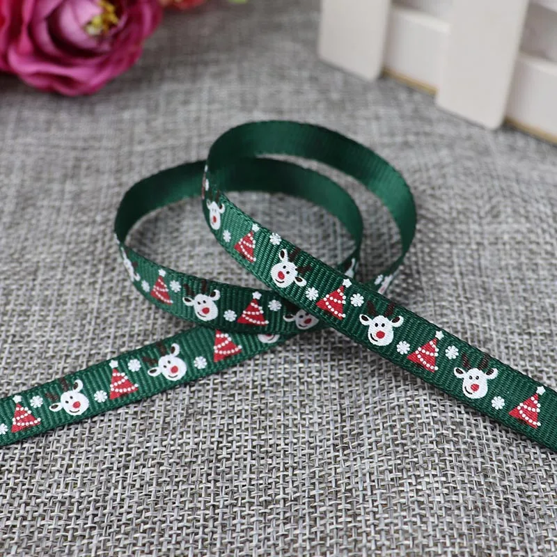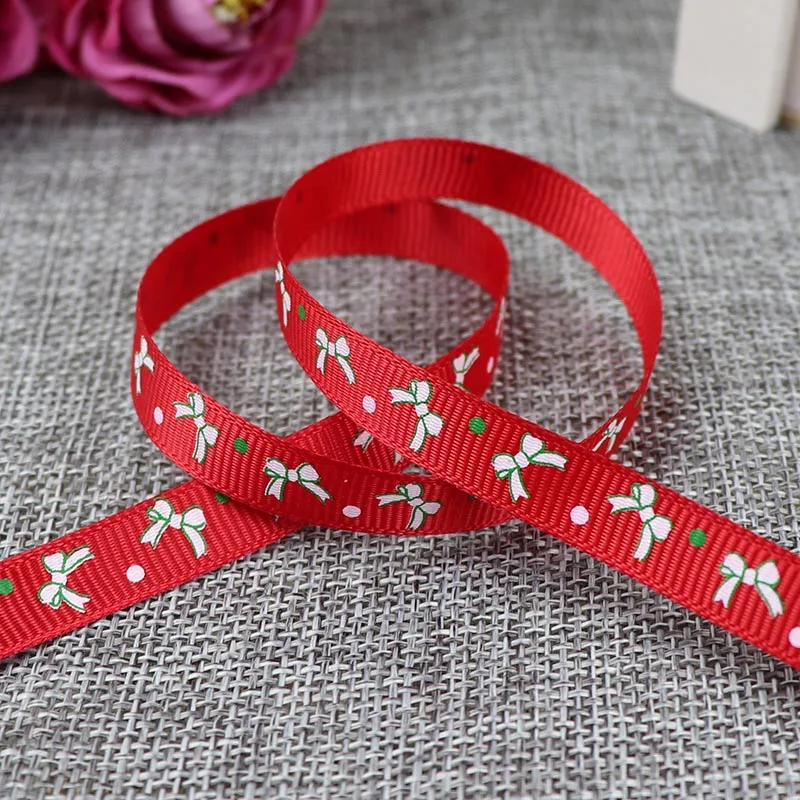 5 Yards/20 Yards 10MM Christmas Ribbon Printed Polyester Grosgrain Ribbons For Decor Gift Wrapping Hair Bows Ribbon For Crafts