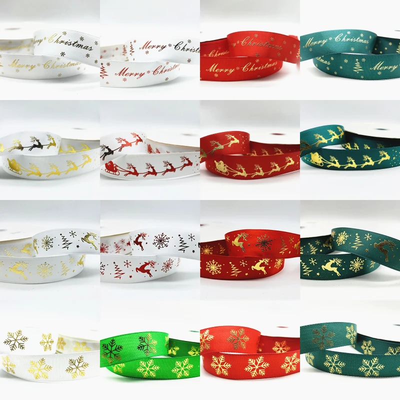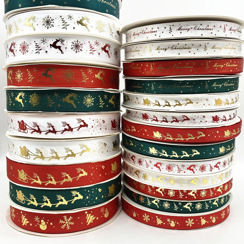5yards 10mm 15mm 25mm Christmas Ribbon Printed Christmas Polyester Ribbon For Handmade Design Christmas Decoration Gift Packing