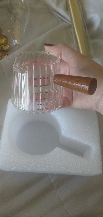 180ML Wood Handle Glass Espresso Measuring Cup - High Temperature Resistance Milk Jug with Scale