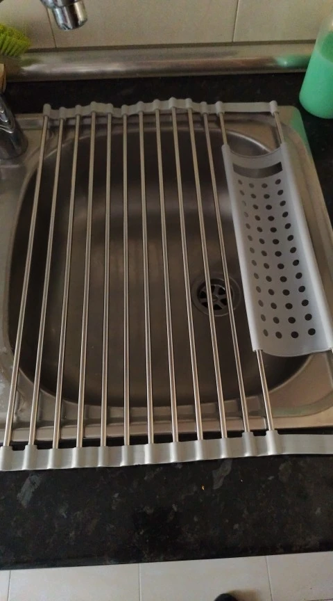 Deluxe Roll-Up Stainless Steel Dish Drying Rack - Space-Saving Over-The-Sink Kitchen Organizer, Portable, Anti-Rust with Sleek Metallic Finish