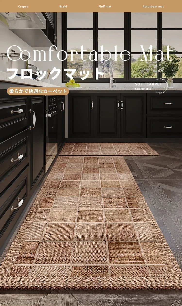 Japanese Kitchen Mat Long Rug Absorbs Water and Oil, Quick-drying, Non-slip Floor Mats, Anti-fall and Dirt-resistant Doormat